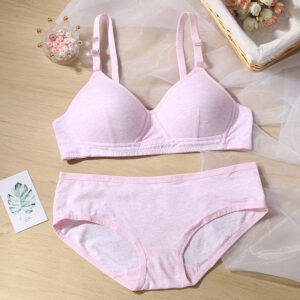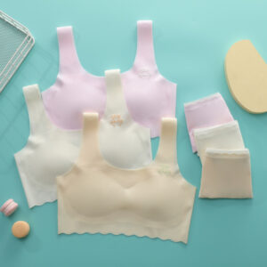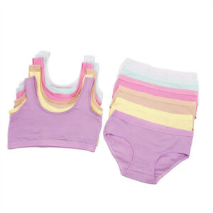 Children Underwear and Bra Girls Boyshort Panties Solid Color Teen First Bra Set Removable Pads Seamless Bra and Boyshort Set